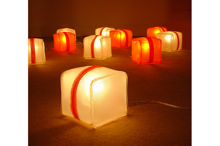 オカモト株式会社が自動車の内装材用に開発した新素材を使った照明です。その新素材とファスナーだけで構成されたデザインはシンプルでリーズナブルな価格を実現しました。ミラノサローネで好評を博し、自社製品ながら、素材の供給が終了するまで世界中で販売されました。