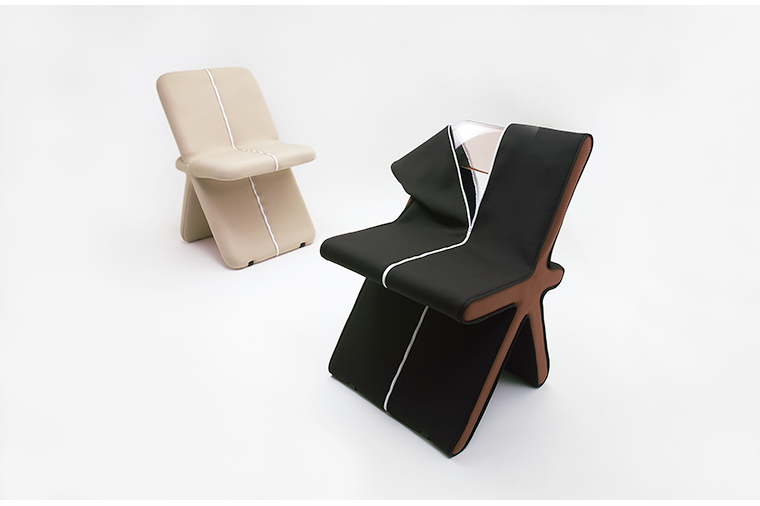 This is a cover for a classic folding chair called Plia. The cover to give new look and feel to folding chairs that often become disused and thrown away as the living environment changes, it is made of a material called Neoprene which is usually used for wet suits.