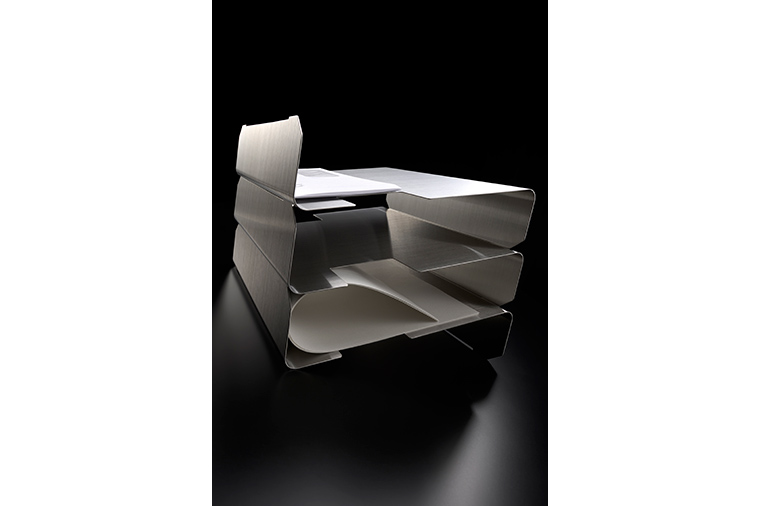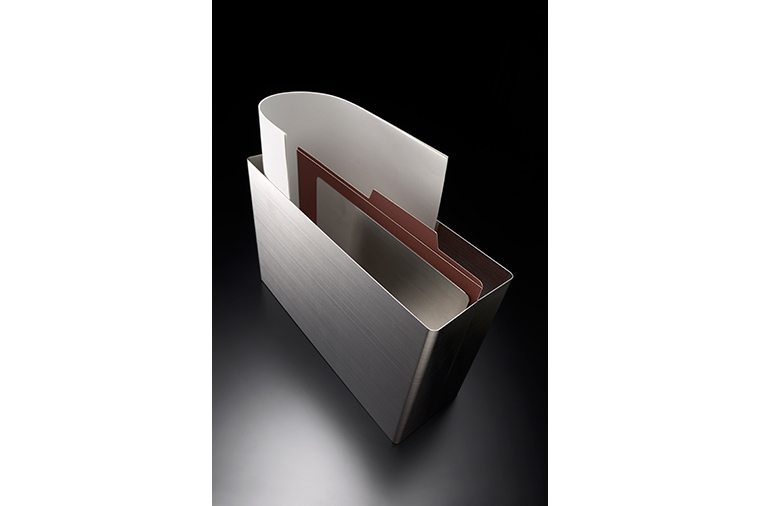 这项设计包括回形针、卷宗夹压板、文件盒和文件架。业者拥有处理截面的高超技术,能够运用不锈钢薄片,打造出安全又柔和圆滑的试作品。